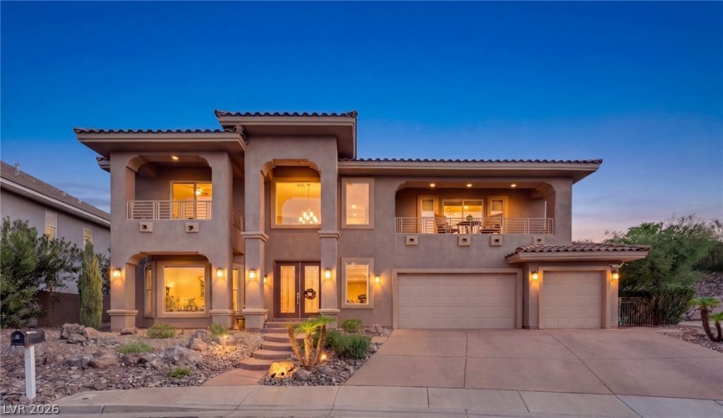 Elevated Luxury Living! Unobstructed views of the city, mountains & Las Vegas Strip. Located just mins from Lake Las Vegas! Enjoy easy access to championship golf courses, waterfront dining, boutique shopping, & yr round resort events, all while savoring the privacy of this exclusive hillside setting. This beautifully appointed home features a grand formal entrance, a chef's kitchen w/wraparound counter, bay window nook, and open flow into the family room with fireplace and patio access. Marble flooring spans the first floor. Upstairs, the spacious primary suite offers a private balcony dual walk-in closets, and a spa-style bath with jetted tub and oversized shower. A loft w/wet bar and second balcony provides additional entertaining space. Outdoor living includes a covered patio, stone terrace, & new 12-person spa. Finished 3-car garage with epoxy floors, storage, new water conditioner, and 2 brand-new AC units. No rear neighbors, permanently protected views. Rare Low HOA. Must see!