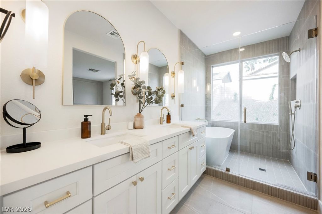 Nestled along the prestigious Green Valley Masterplan, discover sanctuary in this reimagined residence brought to you by Better Assets. Awaiting inside you'll find a fully updated interior where premium plank flooring flows thru-out the common areas, beautifully highlighted by fine fixtures, custom finishes, & one of a kind character. Relax in your living room anchored by an elegant fireplace embossed in lavish stone. Wine & dine your guests under the glow of dreamy chandelier. Craft 5-star meals & culinary delights in your gourmet kitchen so stunning it could be on the cover of a magazine. Escape to a magnificent primary suite paired with a luxurious ensuite. Beyond the barn door, unwind in peace & tranquility starting with a glamorous shower wrapped in bespoke floor to ceiling tile encased in plate glass, or grab your favorite book & fill up your serene soaking tub. Enjoy the backyard oasis featuring a covered patio surrounded by blossoming vines, vegetation,artificial grass.