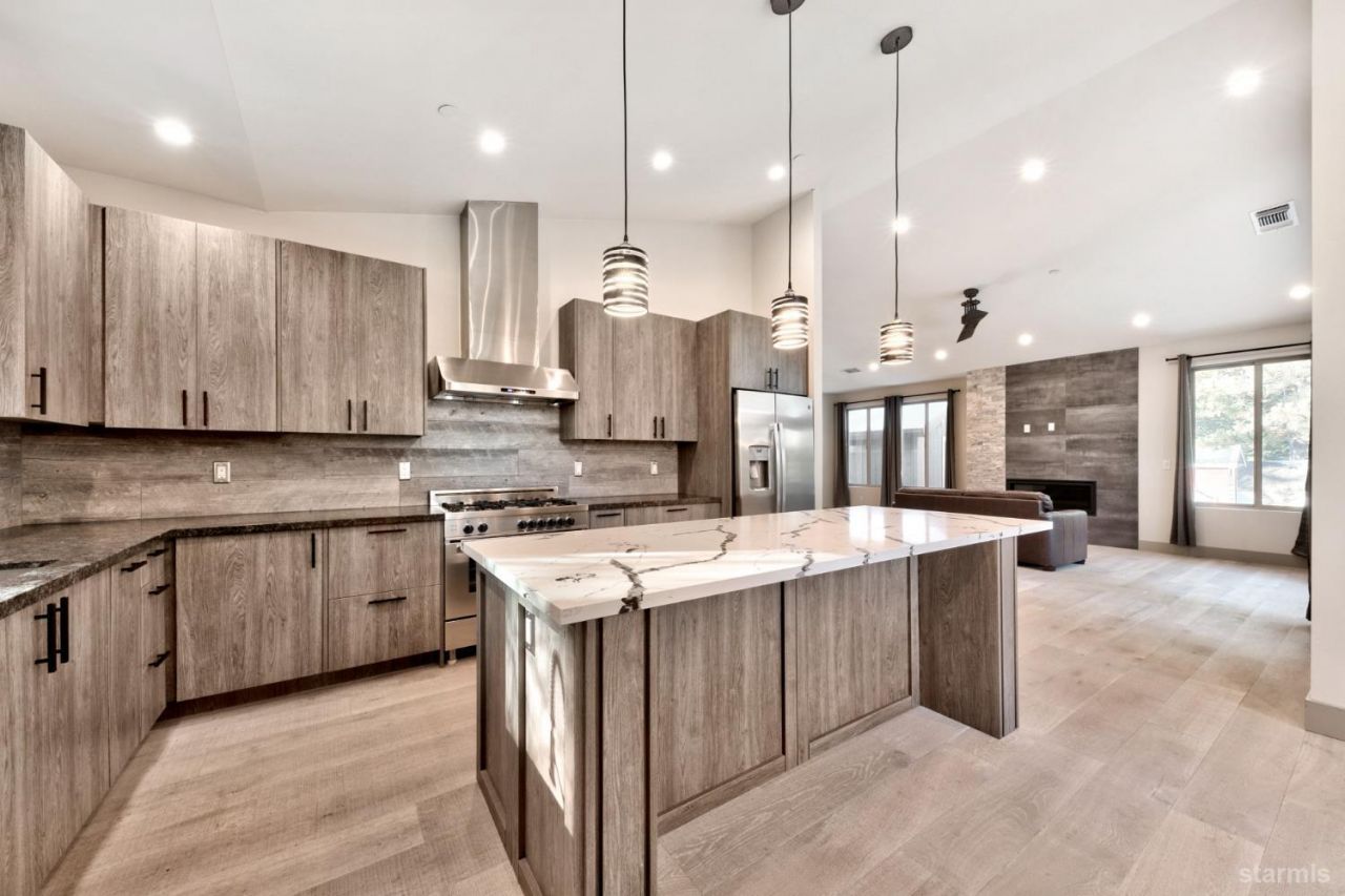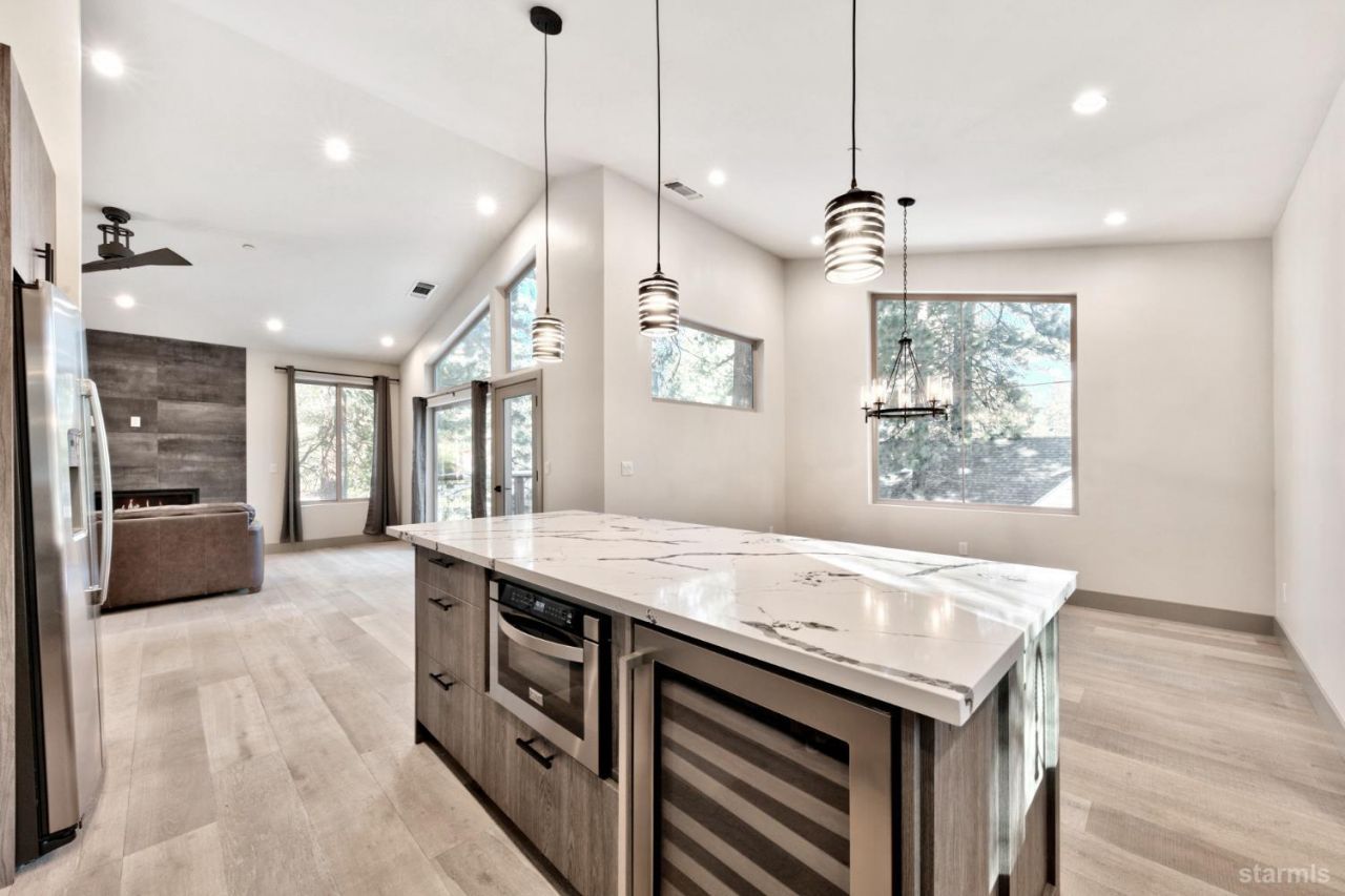 Located in the desirable Gardner Mountain neighborhood, this newer custom home with a detached ADU offers a rare opportunity for flexible living and short or long term rental income potential. Built in 2022, the property includes a 2,381 square foot main home with 4 bedrooms and 3 bathrooms, and a 2 car garage, plus a detached 926 square foot ADU featuring 2 bedrooms, 1 bathroom, and an oversized 3-car garage.The location is ideal for enjoying the Tahoe lifestyle, just 2.5 miles from the beach and only steps from an extensive network of mountain biking and hiking trails leading toward Fallen Leaf Lake, Camp Richardson, and beyond.Upstairs in the main home is a spacious great room with vaulted ceilings, wide-plank wire-brushed white oak flooring, a gas fireplace, and a clean mountain-contemporary design. The kitchen is well equipped with stainless steel appliances, a commercial-style gas range, granite slab counters, a quartz-topped island with wine refrigerator, and an adjoining dining area. The primary suite includes dual closets and a well-appointed bathroom with a modern dual-sink vanity, freestanding tub, and custom tile shower. Downstairs features a large family room with a second gas fireplace and access to a covered deck that is pre-wired for a hot tub.The detached ADU mirrors the quality of the main home and offers upstairs living above an approximately 845 square foot 3-car garage, creating excellent separation between the two residences.The main house is currently rented for $4,000 per month and the ADU for $3,000 per month, with the ADU becoming vacant soon. Whether you are looking for a primary residence with additional income, a multi-generational setup, or a strong investment property, the combination of a newer build and a detached ADU makes this a unique opportunity in the South Lake Tahoe market.